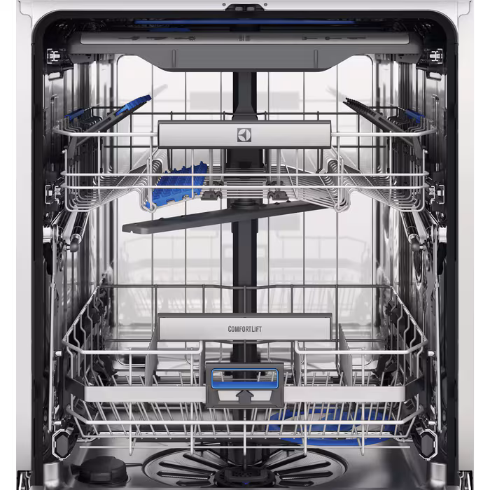 Naša jedinstvena značajka ComfortLift znači da se više ne trebati sagibati radi punjenja ili pražnjenja perilice posuđa. Laganim stiskom ručke podignite vodilice donjeg stalka prema sebi. To je prva takva značajka na svijetu od nas za vašu udobnost.