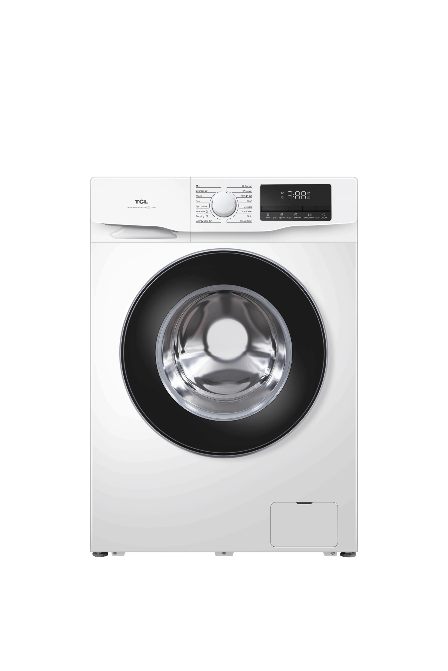 Perilica rublja TCL koristi digitalne unutarnje vage za vaganje vašeg rublja, a zatim automatski izračunava potrošnju vode i trajanje ciklusa prema količini rublja u bubnju. Ovaj sustav automatskog vaganja jamči vrlo učinkovito korištenje vode, energije i vremena čak i s malim punjenjem.