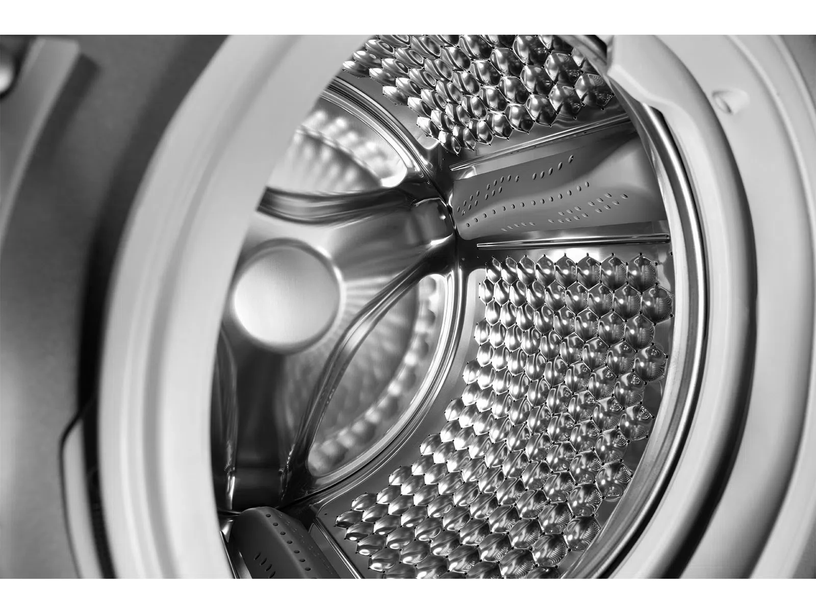 Jedinstveni šesterokutni dizajn u obliku saća u kombinaciji s jačim S-oblikovanijem raspršivačem pruža najnježniji tretman za savršeno čisto rublje s minimalnim brojem nabora. Održava čak i vaše najosjetljivije tkanine kao nove.